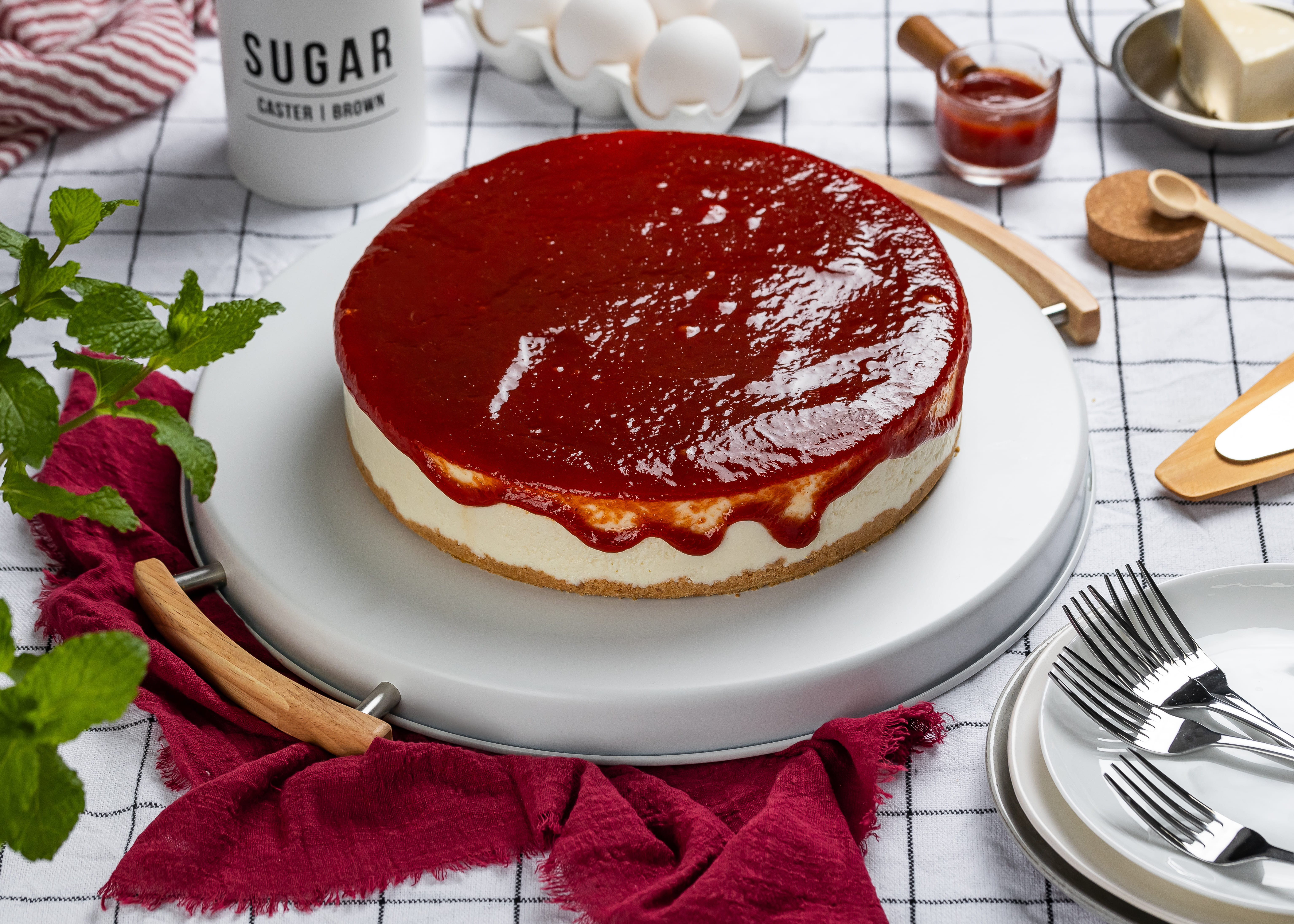 Base de biscoito maizena, recheio de ricota com leite condensado, com geleia e goiaba.