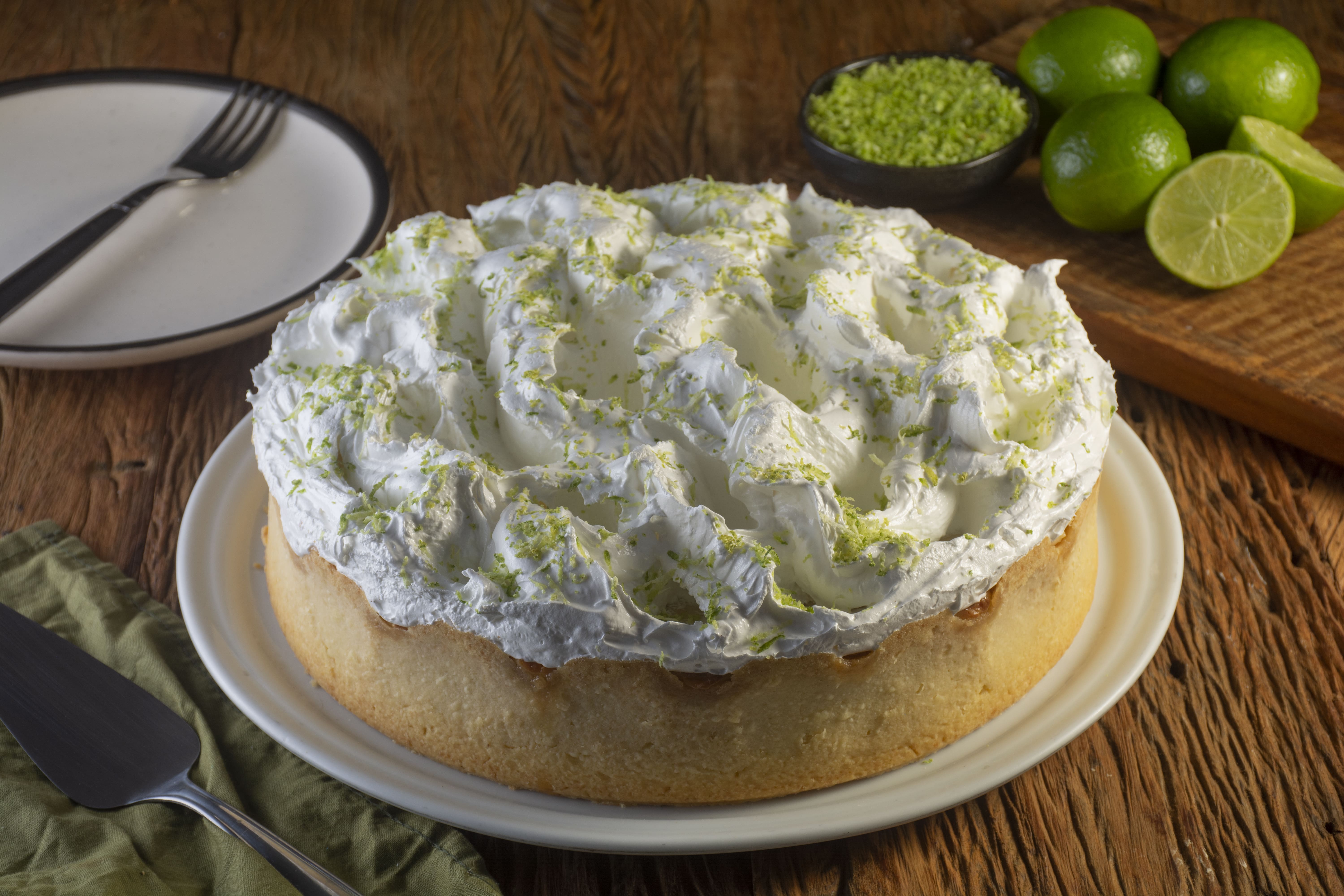 Mousse de limão em casquinha crocante. coberta com marshmallow.