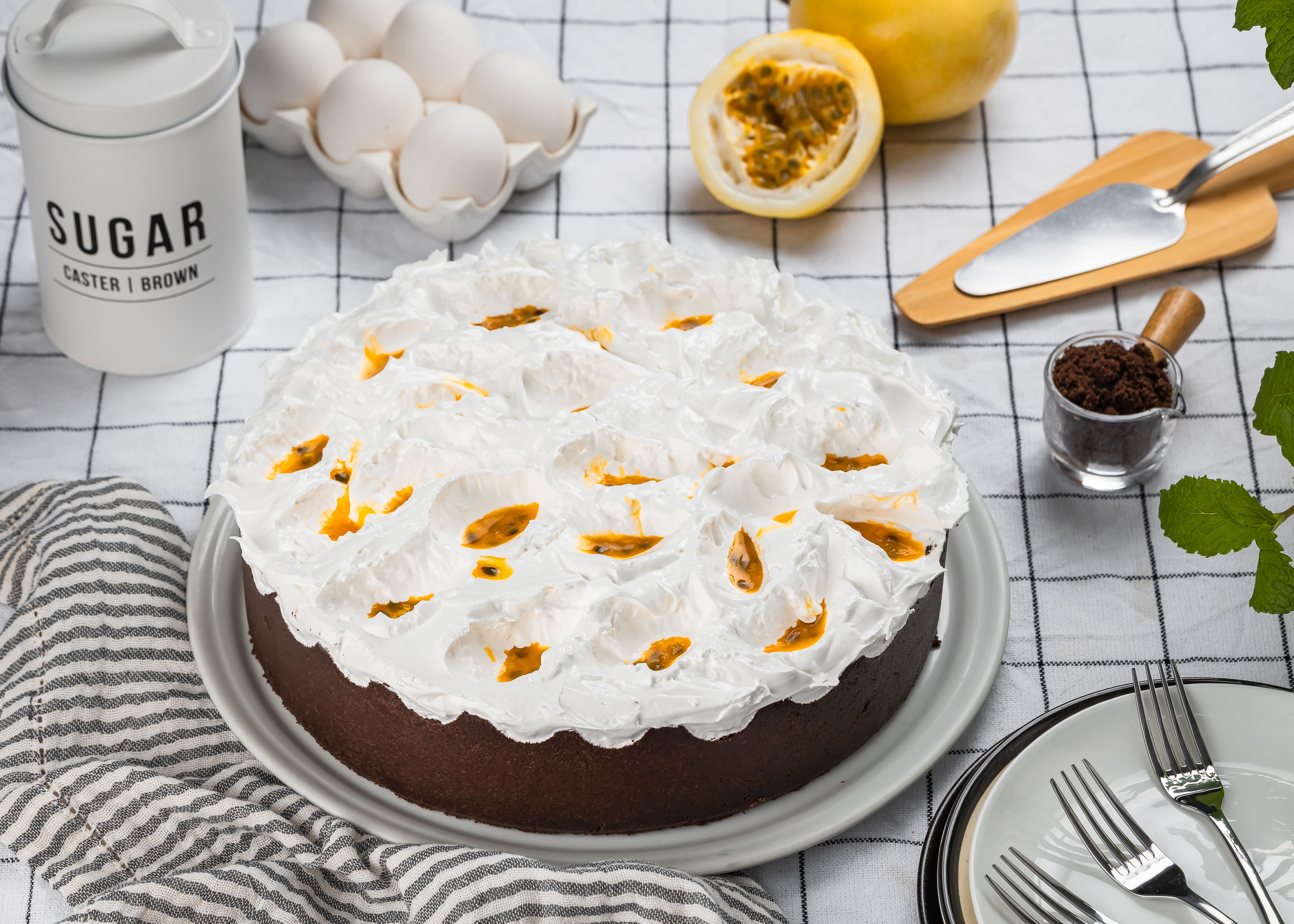 Mousse de maracujá em casquinha crocante de biscoito negresco.